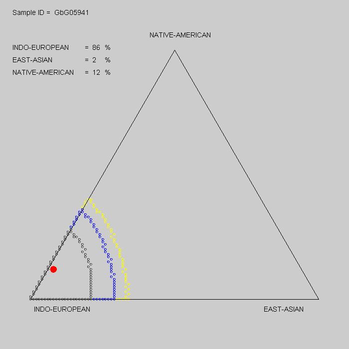 | The BGA test determines the probable fractions of one's ancestry that are Indo-European (European, Middle Eastern and South Asian), Native American (South and North American), sub-Saharan African (all African countries but Algeria, Chad, Egypt, Morocco, Sudan and Tunisia) and East Asian (Japanese, Chinese, Korean and South Pacific). | |||||||||||||||||||||||||||||||||||||||||||||||||||||||||||||||||||||||||||||||||||||||||||||||||||||||||||||||||||||||||||||||||||||||||||||||||||||||||||||||||||||||||||||||||