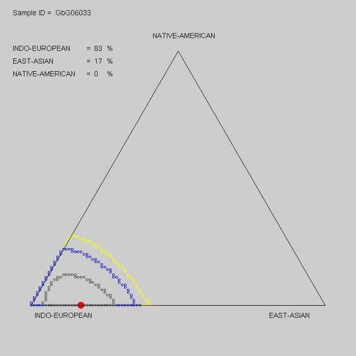 were female. Comments of L. David Roper: I am also 17% East Asian and I have family traditions of Native American ancestry, but not hard evidence such as Brett Strobel has. I think that some Native American ancestry is testing as East Asian, which is not terribly surprising since there may have been at least two migrations of Asians into America. |