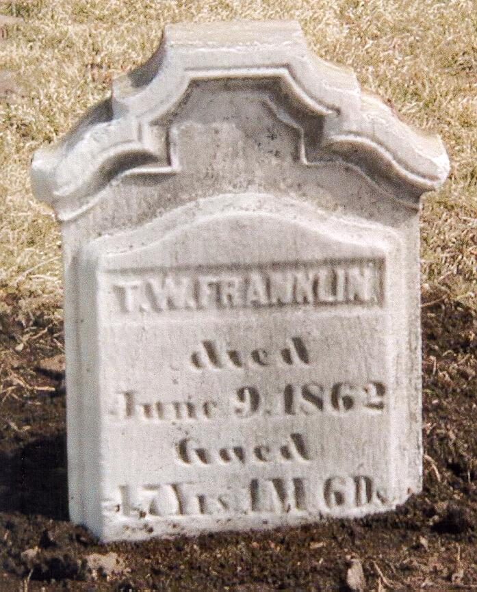 Thomas Wingfield Franklin was born 3 May 1815 in Highland Co. OH and died 9 June 1862 in Galesburg, Knox Co. IL. He is buried in the Knoxville Cemetery just outside the town of Knoxville IL: