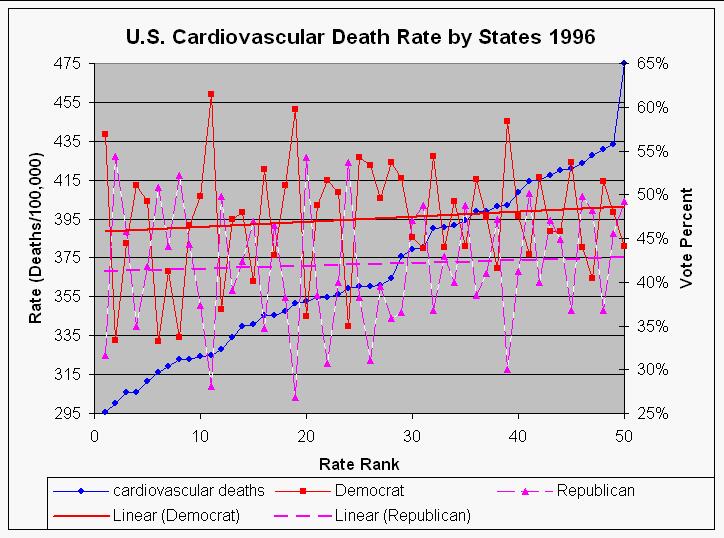 | U.S. cardiovascular deaths 1995-97 | 1996 election | |||