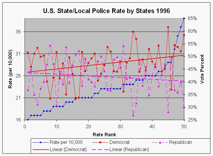 | U.S. state/local police rate | 1996 election | |||