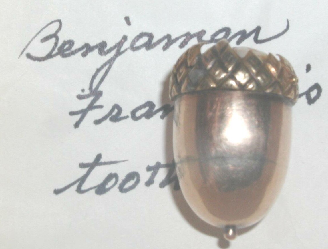 Another possibility has occurred to me: Benjamin Franklin was one of the founders of The Pennsylvania Hospital in Philadelphia. It could be that the hospital gave Benjamin one of his teeth encased in a gold acorn in appreciation for his efforts at founding the hospital.