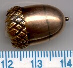 Thank you for the opportunity to examine the remains of the tooth you brought in. In my opinion the tooth is human in appearance and my guess is that it is a lower left second molar. It appears to have carious destruction of the clinical crown which probably caused its previous owner to have an abscess and a resulting toothache. In the time of Ben Franklin root canal treatment would not have been available; however, an extraction could have been performed. --- Unfortunately the metal (gold acorn) thwarted my attempts to radiograph the tooth and see the root anatomy which would have allowed me to positively identify the tooth. I know you are going to have DNA testing performed on the tooth. Because of your family relationship to Ben Franklin I suspect that this is an authentic specimen. Closer inspection of the watch fob under higher magnification (see 2nd picture below) seems to indicate that the tooth can be removed intact by loosening the small screw on the side and removing the top of the fob. The tooth is packed in with some inert wadding material. Also, note the tooth appears to be mechanically fractured in two pieces. --- Thank you allowing me to be the first dentist to inspect the tooth. Sincerely, Gary L. Glasband, DDS, Long Beach CA, 22 June 2004