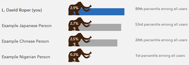 2.9% 80th percentile(Average 23andMe user: 2.7%)