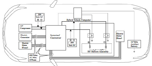 1.9-kWh nickel-metal hydride 288 volts (30 modules of 9.6 volts); 151.7 lbs |