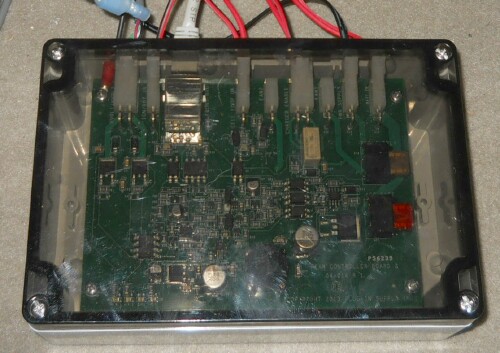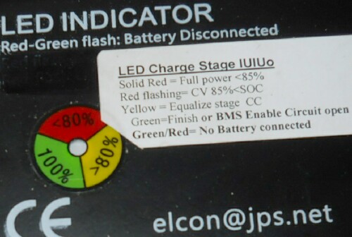 It has a small green light near top center that shows that the plug-in system is working. There are two jumper location near the top center, J14 & J15 that sometimes have to be closed to get the charger to work.