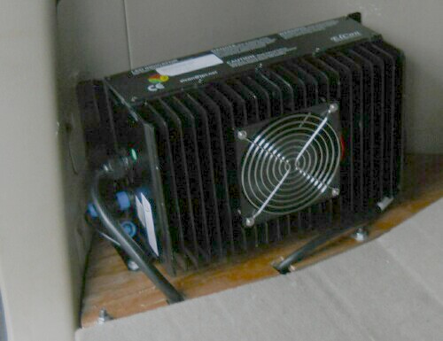 The 120-volts ElCon PFC-2500 charger (13.9" x 7.7" x 5.5", 15.4-lbs) starts out at ~12.7-amps (or ~15.2-kW). Near the end of charging it reduces the current at a fixed voltage. Finally, it equalizes the 108-batteries-pairs voltages.