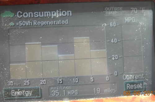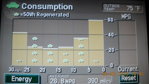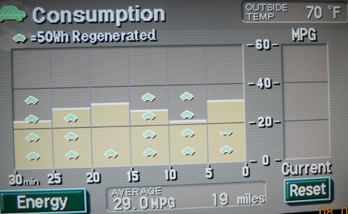 Consumption and regeneration with plug-in on and plug-in battery depleted for last 25-30 miles for trip home: