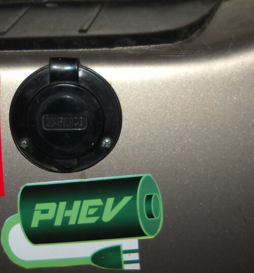 Here is a picture of the plug on the right of the back bumper for charging the plug-in battery using 120-volts house current: