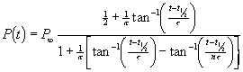We shall show, by numerical integration in fitting the data, that this P(t) function yields a c2 about three times the c2 obtained for the fit using the generalized inverse tangent function, even though it has one more parameter to be varied in the fit. We shall see below that this difference in goodness of fit makes the fit using our function much more probable than the Austin Brewer function fit.