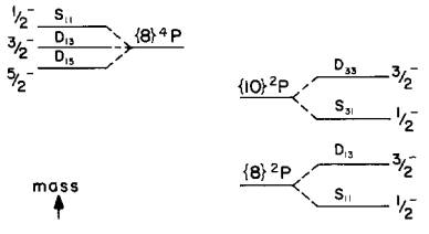 quark model. The {SU3}2S+1L multiplets are shown split into the JP