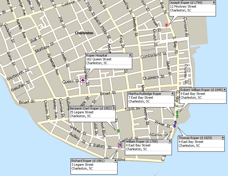 | Here is a map of where these Charleston Ropers lived, prepared by William Alexander Roper, Jr. |