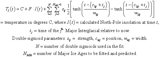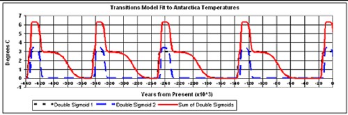 In (Roper, 2004) it is shown that those last four Major Ice Ages can be reasonably fitted with Earth states transitions represented by hyperbolic tangents. The mathematical equation used to make the fits is