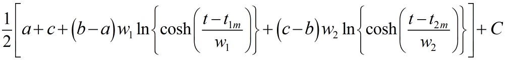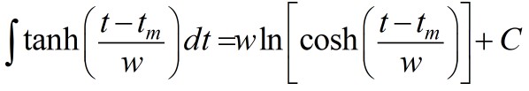 Hyperbolic-tangent functions can be use to represent cumulative production of a product that changes between levels of daily/weekly/annual production. To do this the integral of the tanh function is needed to give the area under the production curve: