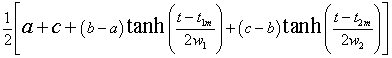 Now that we have seen the mathematical shape of the hyperbolic tangent it is not so mysterious why it is applicable to so many physical processes. Many physical processes have several different states of existence. The hyperbolic tangent is a function that can easily represent the transition from one state to another. The general form for a double hyperbolic tangent is: