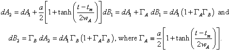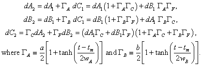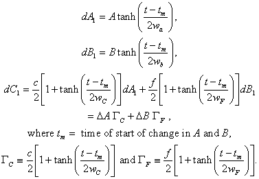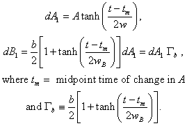Similarly, when B changes as above in first order, A then changes gradually by the zero-start hyperbolic tangent to some new value. So, the second-order approximation is: