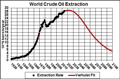 It is possible that the decline in extraction of fossil fuels will cause a population collapse. This would surely cause the world energy consumption to also fall to some new asymptote. In that case the amount of energy that must be supplied by other than fossil fuels and uranium would be less than shown above.