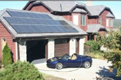 The small panel above the three windows near the center is the solar-hot-water collector. |