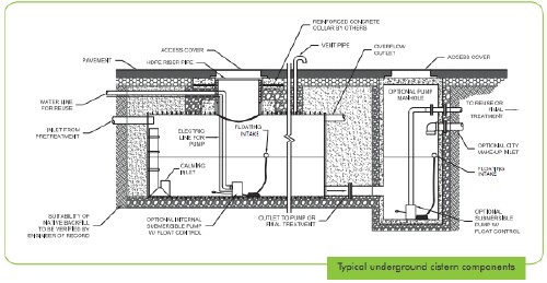 Even better than rain barrels would be a multi-thousand-gallons cistern. A cistern example and its construction.