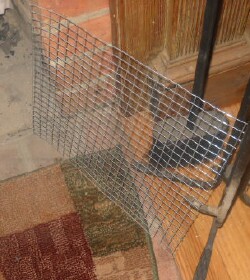 I take out the ash-dump swinging cover and put the wire over the ash dump when the fireplace is being used, to let cold outside air get into the fireplace from below to keep it from drawing so much air from leaks in the house and thereby cooling the house.What if your fireplace's chimney does not draw well, especially in high winds? The answer is to install a special chimney cap that uses the Bernoulli Principle to increase the updraft. I installed the Vacu-Stack Wind Resistant Chimney Cap: