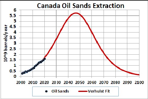 Since crude-oil extraction in the U.S. will peak soon, oil companies want to make it possible to transport oil from Canadian oil sands and North Dakota to world markets through a direct pipeline to Houston, Texas on Gulf of Mexico (Keystone XL pipeline). Relevant to this are projections of extraction of crude oil from Canadian oil sands and North Dakota:
