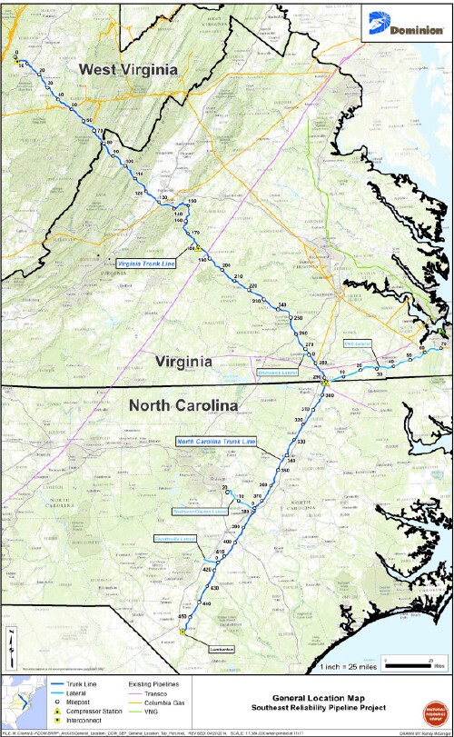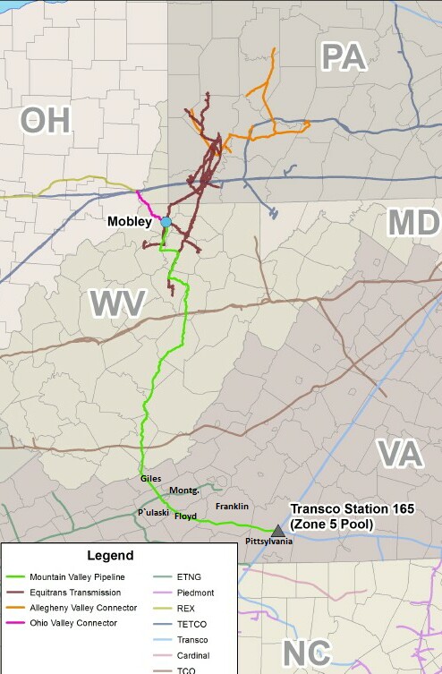 It is a 42" diameter pipe about 330-miles long, about 20 miles in Floyd County VA.