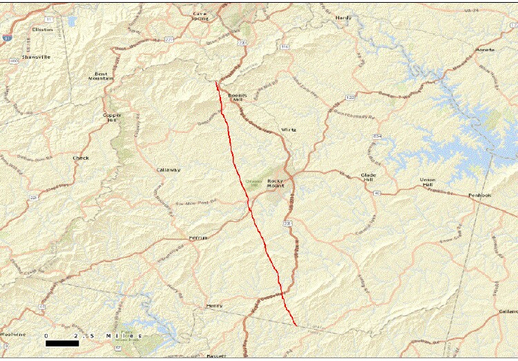 One wonders why a more direct route from West Virginia to Pittsylvania County VA was not chosen.