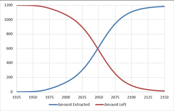 It appears that the recent rapid rise in extraction rate is unsustainable for more that a few decades or so from now.