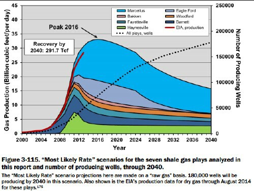 “Most Likely Rate” scenario of combined seven largest shale-gas plays extraction.