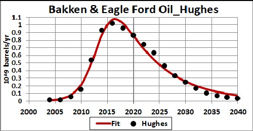 So the asymmetry parameter, n, for tight-oil extraction in the U.S.can be estimated from the combined Bakken and Eagle Ford projected extraction as determined by Hughes: