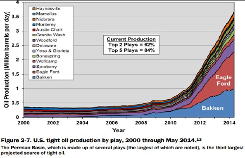 This shows that U.S. tight oil extraction is mainly in the Bakken and Eagle Ford plays