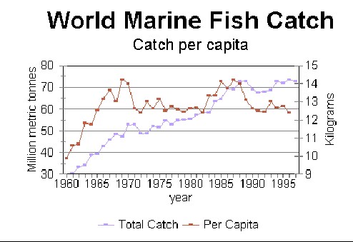 If these data are correct, it appears that, if current trends continue, the world fish catch will decimate the fish in the ocean before 2100.