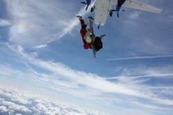 Peter jumped first to celebrate his 60th birthday, Jeanne was second, I was third and Chris was last of all jumpers. The vidiot positioned himself backward to the left at the exit so that he jumped backward just as we jumped forward, filming us all the time, including many still photos as well as a movie. My vidiot was Chris, who did an excellent job of catching the important features of my dive.