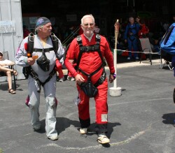 I helped Clarence gather up the parachute and carry it to the hanger. (Later I saw Clarence practicing formation diving with ten other divers before they went up. Our dive was his 3rd of the day; he planned to do six.)